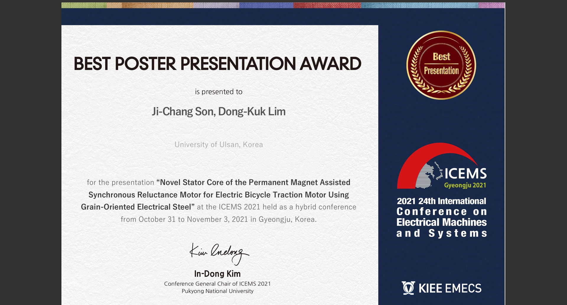 [2021] ICEMS Best Presentation Award