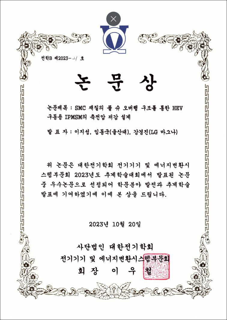 [2023] 대한전기학회 추계학술대회 논문상